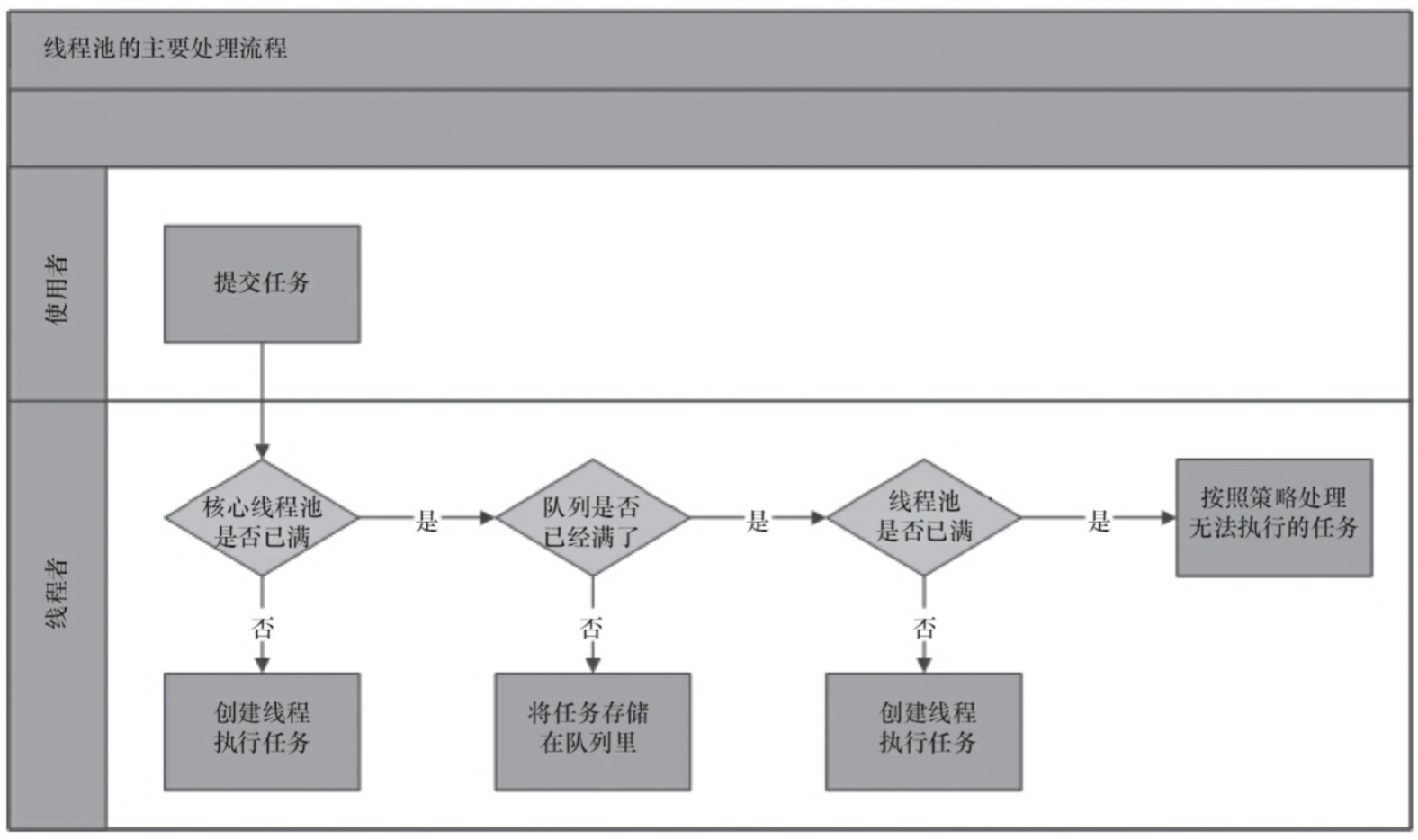 在jdk里面,我们可以将处理流程描述得更清楚一点。来看看ThreadPoolExecutor的处理流程。